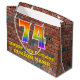 Esta vibrante e divertida design de presente de aniversário, inspirada na arte urbana, apresenta um grande número de "74" tendo um padrão inspirado no espectro do arco-íris. Também apresenta a mensagem "Feliz 74.º Aniversário", e um nome personalizado. O plano de fundo apresenta um padrão inspirado na parede do tijolo. Uma bolsa de presente colorida de aniversário temida como esta pode ser uma maneira divertida de embrulhar um presente ou de apresentar para celebrar o setenta e quarto aniversário de alguém. [~Z0000522]