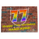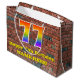 Este vibrante e colorido design de bolsa de presente temático de aniversário, inspirado no grafite e na arte de rua, apresenta um grande número "77" com um padrão inspirado no espectro do arco-íris, juntamente com a mensagem "Feliz 77º aniversário", e um nome editável. Ele também tem um padrão inspirado na parede de tijolos. Um presente temático de aniversário como este pode ser uma maneira divertida de embrulhar um presente ou presente para celebrar o setenta e sete anos de alguém. [~Z0000522]