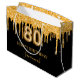Sacola Para Presentes Grande 80 aniversário dourada preta dobra nome