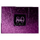 Gradiente profundo de brilho roxo e rosado. Para uma festa de aniversário 80. Um quadro preto e roxo com espaço para seu nome, 80 anos e uma data. O nome é escrito em branco com um moderno estilo escrito à mão. Idade em rosa.