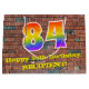 Este design de bolsa de presente colorida e divertida, inspirado no grafite e na arte de rua, apresenta um grande número "84" com um padrão inspirado no espectro do arco-íris, juntamente com a mensagem "Feliz 84.º Aniversário", e um nome personalizável. Ele também tem um padrão de estilo de parede de tijolos. Um saco-presente temático de aniversário como este pode ser usado quando se dá um presente ou presente em celebração do oitenta e quarto aniversário de alguém. [~Z0000522]