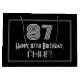 Este estilo itinerante dos anos 20 inspirou a vintage a olhar aniversário o temed giftbag design apresenta um grande número de arte "87", a mensagem "Feliz 87.º aniversário", um nome personalizado e um padrão de borda que consiste em linhas finas. Também tem um fundo de cor preta. Um saco-presente como este pode ser usado para dar um presente ou presente em honra do 87.º aniversário de alguém. [~Z0000497]