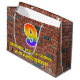 Este design de bolsa de presente colorida e divertida de aniversário, inspirado pela arte de rua, apresenta um grande número "9" tendo um padrão inspirado no gradiente do espectro arco-íris. Também apresenta a mensagem "Feliz 9.º aniversário", e um nome personalizável. Ele também tem um padrão de estilo de parede de tijolos. Um saco-presente como este pode ser usado ao embrulhar presentes sendo dados a alguém em comemoração do seu nono aniversário. [~Z0000522]