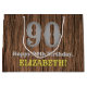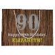 Este olhar do Oeste Selvagem Americano e o design de bolsa de presente inspirado no país inspiram o seu aniversário, apresenta um grande número "90", a mensagem "Happy 90 Birthday", um nome personalizado e um fundo de padrão inspirado em estilo faux/imitação de grãos de madeira. Uma bolsa de presente de aniversário editável como esta pode ser uma maneira divertida de embrulhar um presente ou presente que está sendo dado a alguém que comemora seu nonagésimo aniversário. [~Z0000470]