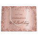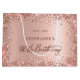 Girly Glam Modern Rosa com Folha Glitter Dourada Nome 60º (ou QUALQUER IDADE) Saco Personalizado de Presente de Aniversário Personalizado. Esta design da festa de aniversário da NINETIETH (NINETIETH), de Girly Adulta, com um nome monograma, em um roteiro de caligrafia manuscrito em na moda, e data e idade, em cor-de-rosa pincelada ou ouro rosa, esfregam folhas de folhas metálicas, com um quadro de brilho solto. Ideal para uma celebração feminina de aniversário de um adulto ou de um marco feminino, isto captura perfeitamente a essência de um rosa moderno ou de uma festa de aniversário cintilante rosa-reluzente.