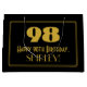 Este estilo 1920/1930s inspirou a aparência de vintage aniversário o temed giftbag design apresenta um grande número de arte "98", a mensagem "Happy 98th Birthday", um nome personalizado e um padrão de borda consistindo em linhas finas. Ele apresenta um fundo de cor preta. Uma bolsa de presente como esta pode ser usada ao embrulhar um presente de aniversário ou um presente dado a alguém que comemora seu aniversário de 98 anos. [~Z0000501]