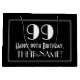 Este estilo 1920/1930s inspirou a aparência vintage, o design do giftbag temático apresenta um grande estilo de deco inspirado no número "99", a mensagem "Feliz 99º Aniversário", um nome editável e um padrão de borda consistindo em linhas finas. Também tem um fundo de cor preta. Um saco de presentes como este pode ser usado quando embrulhar presentes sendo dados a alguém em comemoração de seu 99º aniversário. [~Z0000496]