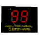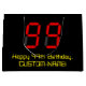 Este design de saco-presente de aniversário nerd e divertido apresenta um grande número de "99", com uma aparência de sete segmentos vermelhos ao estilo de exibição digital, juntamente com a mensagem "Feliz 99º Aniversário", e um nome personalizado no texto amarelo estilo retrô geek, num fundo preto colorido. Uma bolsa de presente personalizada como esta pode ser usada ao embrulhar presentes ou presentes sendo dados a alguém que comemora seu nono aniversário. [~Z0000389]
