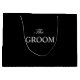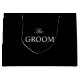 A bolsa de presente grande do Groom. Script e texto bloqueado em branco sobre fundo preto.
