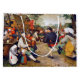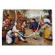 Pieter Bruegel, o Velho (1525-1530-9 de setembro de 1569), foi o artista mais significativo da pintura Renascentista holandesa e flamenga, pintor e impressora de Brabant, conhecida por suas paisagens e cenas camponesas (a chamada pintura do gênero); foi pioneiro no fazer tipos de assunto em foco em grandes pinturas. Os historiadores da arte pensam que ele era nascer em Breda ou Breugel (uma aldeia no município de Son en Breugel), ambos localizados na atual província holandesa do Brabante do Norte. Ele exerceu uma influência formativa na pintura holandesa da idade do Ouro e, mais tarde, pintou em geral em suas escolhas inovadoras de matéria, como uma das primeiras gerações de artistas a crescer quando os súditos religiosos deixavam de ser objeto natural de pintura. Ele também não pintou retratos, o outro esteio da arte holandesa. Após sua formação e viagens à Itália, ele voltou em 1555 para se estabelecer em Antuérpia, onde trabalhava principalmente como prolífico designer de impressões para a principal editora do dia. Somente no final da década ele se mudou para fazer a pintura do seu meio principal, e todas as suas famosas pinturas vêm do período seguinte, pouco mais de uma década antes de sua morte inicial, quando ele provavelmente estava no início dos anos 1940, e no auge de seus poderes. Além de olhar para frente, sua arte revigora assuntos medievais como sondas marginais da vida normal em manuscritos iluminados, cenas de calendário de trabalhos agrícolas em paisagens, e as coloca em escala muito maior do que antes, e no caro meio de pintura a óleo. Ele faz o mesmo com o mundo fantástico e anárquico desenvolvido em impressões e ilustrações de livros da Renascença. Citação: Wikipedia