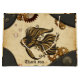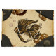 A maravilha mecânica do peixe-galo-do-oceano. O estilo steampunk apresenta detalhes complexos de preto e ouro. O peixe está rodeado de engrenagens e bolhas, em contraste com um fundo texturizado de pergaminho envelhecido. Os cantos das imagens são enquadrados com material e esferas escuras, metálicas, perfuradas. A estética geral é uma mistura de elementos mecânicos e orgânicos, criando um cenário de fantasia.