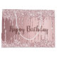 Um saco de presente para um aniversário de 21 ruas (ou qualquer idade) feminino e glamouroso. Um rosa empoeirado, cor-de-rosa, fundo metálico de aparência falsa com pingos de brilho sujo, aparência de pingar de tinta. Escrita escrita moderna e texto: feliz birtdhay