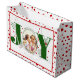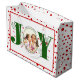 Adicione suas fotos verde JOY e padrão vermelho de bolinhas Large Gift Bag. Uma fotografia © Storytree Studios, Stanford, CA