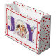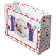 Sacola Para Presentes Grande Adicione suas fotos, JOY roxa e bolinhas vermelhas