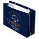 Esta bolsa de presente de graduação de marinho de lei azul e ouro personalizada apresenta tipografia clássica para uma classe de formando de 2024. Personalize com o seu ano de graduação, sob as escalas brancas de justiça, para excelente de advogado personalizado ou presentes de advogado.