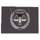A escola de direito criativo formando um saco de presentes com escalas criativas de justiça vestindo um boné de formatura preto e dourado. Para personalizar o texto de edição para adicionar nome e ano ou, de outra forma, personalizar para advogado.
