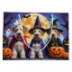 Uma cena divertida de Halloween, com um cachorrinho malicioso a espreitar-se de uma abóbora esculpida, rodeada por vibrações de outono assustadoras. Com um charme viscoso e cores de outono, é o toque perfeito de humor para a estação.