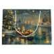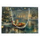 Mergulhe na magia da temporada de férias com esta ilustração lindamente detalhada, mostrando um cachorro orgulhoso sentado em um barco festivamente decorado, deslizando através de um lago de Natal sereno. As luzes cintilantes dos pinheiros próximos refletem sobre a água, lançando um brilho quente e festivo que melhora o conforto ambiente. Os ornamentos pendem do lado do barco, enquanto as lanternas brilhantes iluminam o caminho, criando uma cena que captura a verdadeira essência do calor e alegria natalinos. Esta trabalho de arte nostálgica traz um toque de magia de férias para qualquer espaço, perfeita para aqueles que apreciam o espírito da estação.