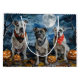 Libere o espírito assustador com esta design sombria do Dia das Bruxas apresentando um bando de cachorros sob um céu escuro e iluminado, cercado por morcegos voadores e abóboras brilhantes. Perfeito para aqueles que amam um toque de diversão terrível com seus amigos peludos!