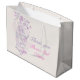 Mostre seu apreço aos seus assistentes de casamento com esta bolsa de presente de flores. Perfeito para encher com um presente especial para mostrar seu apreço. O desenho gráfico de uma gaiola de aves aberta, de uma primavera com corações, de uma linhagem de casal de pássaros. design de casamento moderno e fascinante, parte do conjunto de papéis de carta românticos da gaiola de pássaros. Bonito tom pastel roxo e rosa numa cor de fundo branca. Personalize/personalize estas grandes dádivas a favor de bolsas com o seu próprio nome de florista.Desenhada e desenhada exclusivamente por Sarah Trett.