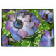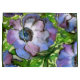 Saco para presentes decorado com uma bela flor de anêmona pintada em tons de roxo, massa e verde