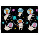 Saco de presentes com uma imagem de animais astronautas em capacetes visuais flutuando no espaço. Girafa, rato, gato e coelho. Tão adorável e divertido.