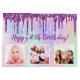 Para um aniversário de 16 anos (ou qualquer idade) feminino e glamouroso. Um arco-íris, fundo holográfico colorido com pingos cor-de-rosa e púrpura, pintura pingando. Personalize e adicione 3 fotos e 16 anos/texto.