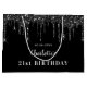 Um saco de presente para um aniversário de 21 ruas (ou qualquer idade) feminino e glamouroso. Um fundo preto clássico com pingos de falso brilho, aparência de pingar tinta. Personalize e adicione uma data, nome e ano 21. O nome é escrito em branco com um moderno estilo escrito à mão.