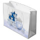 Saco de presente da Cinderela com lindo castelo azul e carruagem em um fundo de conto de fadas. Este saco de presente da princesa é facilmente personalizado com texto.