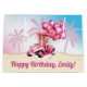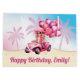 Celebre em estilo com esta bolsa de presente de festa de praia, convertível, rosa e personalizada. Decorados com uma boneca em moda, um conversível rosa, e palmeiras em um esquema cor rosa e azul, esses guardanapos certamente fazem o aniversário de qualquer garota especial.