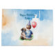Um doce saco de presentes de primeiro aniversario personalizável para a festa de aniversário de um menino. Este tem um tema doce de um menino pequeno segurando um balão sentado ao lado de seu cachorro. É feito com um estilo aquoso de aquarela por ai. Então, se o melhor amigo do seu filho é o cachorro dele, este tema será perfeito para você.