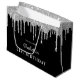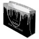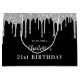 Um saco de presente para um aniversário de 21 ruas (ou qualquer idade) feminino e glamouroso. Um fundo preto clássico com brilho fino de prata pingando, pintura pingando. Personalize e adicione uma data, nome e ano 21. O nome é escrito em branco com um moderno estilo escrito à mão.
