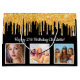Para um aniversário de 21 ruas (ou qualquer idade). Um fundo preto elegante. Com o brilho sujo de ouro, pintura pingando o aspecto. Personalize e adicione 3 das suas próprias fotos, uma data, nome e idade 50. O nome é escrito com um moderno estilo escrito à mão.
