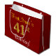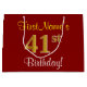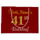 Este simples e elegante design de presente de aniversário apresenta uma mensagem personalizada, como "PrimeiroNome é o 41rua de Aniversário!" (com a "41ruas" a ter um visual falsa/imitado de cor dourada) sobre um fundo vermelho. O nome está em texto amarelo, parecido com script, e pode ser personalizado. Um saco de presente de aniversário personalizado como este poderia talvez ser usado ao dar um presente ou presente a alguém que comemora seu quarenta primeiro aniversário. [~Z0000253]