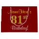 Sacola Para Presentes Grande Aniversário Elegante, Vermelho, Faux Dourado 81rua