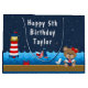 Essa bolsa de presente fofa e divertida pode ser personalizada com um nome ou título, como filha, neta, sobrinha, amiga etc. Apresenta um urso náutico de marinheiro num pavimento de madeira com uma gaivota e um caranguejo. Ao fundo há um farol vermelho e branco, um pássaro giro em um veleiro, ondas oceânicas e um céu azul marinho estrelado à noite. O texto combina fontes em negrito e sem serifa para uma aparência na moda e moderna.
