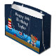 Sacola Para Presentes Grande Aniversário feliz do urso vermelho e Marinho