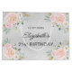 Um fundo com aspecto fino prateado, decorado com flores rosas e brancas. Personalize e adicione uma data, nome, idade. O nome é escrito com um moderno estilo escrito à mão.
