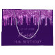 Para um doce aniversário de 16, 16 anos (ou qualquer idade). Um fundo roxo profundo decorado com púrpura e rosa pinto, pingos de brilho, pintura pingando. Personalize e adicione uma data, nome e idade. Um moderno estilo escrito à mão, letras roxas.