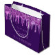 Sacola Para Presentes Grande Aniversário glitter púrpura rosa pinga monograma