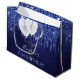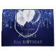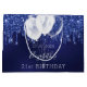 Um saco de presente para um aniversário de 21 ruas (ou qualquer idade) feminino e glamouroso. Um fundo azul marinho decorado com gotas de brilho e balões brancos. A cor azul é irregular. Personalize e adicione uma data, nome e idade 21. O texto: O nome é escrito em branco com um script de estilo moderno, escrito à mão
