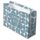 Transforme seu presente de aniversário com este saco de presentes moderno do médio na moda! Um design geométrico, com círculos e semicírculos, criando um padrão abstrato em azul e branco. Basta adicionar o nome do destinatário e a idade celebrada para torná-lo único. O presente personalizado é uma maneira perfeita de adicionar um toque especial aos presentes para a família e os amigos!