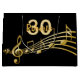 Fundo preto com notas falsas de música dourada para um aniversário de 30 anos. Modelos para a idade de 30 anos e nome. O nome é escrito em um script de estilo manuscrito. Ouro e número.