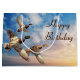 Três patos-reais voando no céu do sol para um aniversário. O texto é editável.