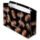 Grande saco lustroso do presente com uma imagem dos futebóis no preto. See que combina o saco médio do presente. Veja a coleção inteira do saco do presente do dia dos pais na seção ESPECIAL dos favoritos para festas dos TOQUES |.