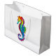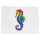 Articulação artificial, brilhante, arco-íris, cavalo de mar poligonal sobre fundo branco. Tatuagem brilhante.