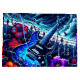 Esta bolsa de presente tem uma guitarra de arte nela.