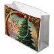 Crimson e Ornamentado Verde Árvore de Natal Gift Bag, personalize o texto para qualquer coisa que você quiser quando solicitar