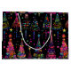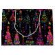 Sacola Para Presentes Grande Árvores de Natal Psicodélicas em Preto