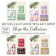 Esta bolsa de presente de Natal é decorada com árvores de Natal a aquarelas em tons de rosa e roxo. Diz Feliz Natal na tipografia de na moda. O texto é personalizável. Original Watercolor © Michele Davies.